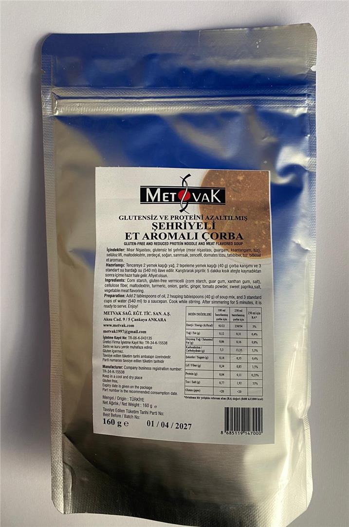 İçindekiler: Mısır Nişastası, glutensiz tel şehriye (mısır nişastası, guargam, ksantangam, tuz), selüloz lifi, maltodekstrin, zerdeçal, soğan, sarımsak, zencefil, domates tozu, tatlı biber, tuz, bitkisel et aroması.